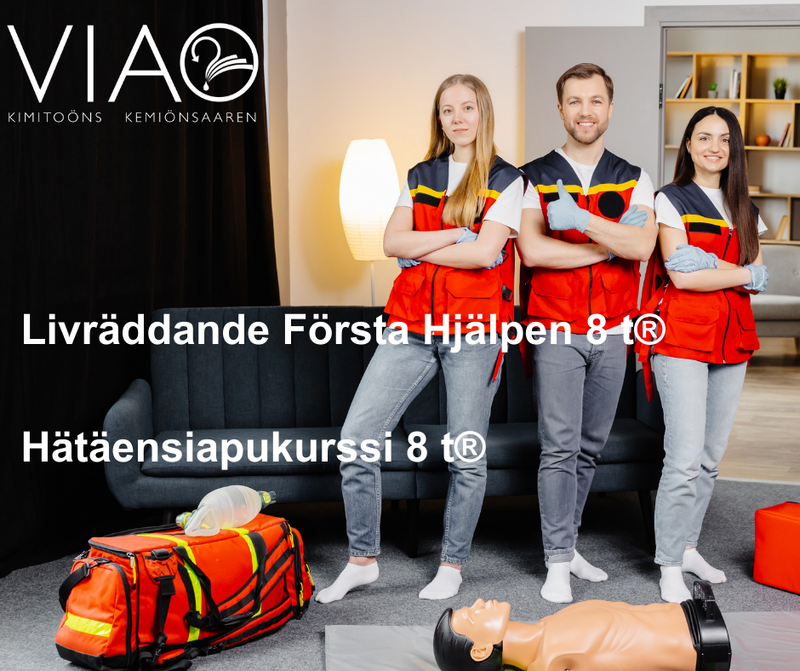 Koulutuksessa opit kattavat taidot ja saat rohkeutta äkillisissä henkeä uhkaavissa ja hätäensiapua vaativissa tilanteissa toimimiseen Tällä kurssilla voit myös yhden kerran päivittää voimassa olevan SPR Ensiapukurssi EA 1® tai SPR Ensiapukurssi EA 2® pätevyyden kolmeksi vuodeksi eteenpäin. Hätäensiapukurssi 8 t® sopii sinulle, kun haluat oppia ensiaputaitoja kotiin, vapaa-ajalle, harrastustoimintaan tai työpaikalle. Kurssille voit tulla ilman aiempaa ensiapukoulutusta. Koulutus koostuu etäopiskelusta (4x45 min) ja lähiopetuksesta (4x45 min). Saat sähköpostiisi koodin jolla rekisteröidyt etäosuudelle. Tämä osuus on mahdollista tehdä omaan tahtiin ja osissa, mutta se tulee olla suoritettuna kokonaan ennen lähipäivään osallistumista. Lähiopetus: 24.3. Kurssimaksuun sisältyy todistus. Ilm. viim. 4.3.